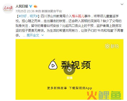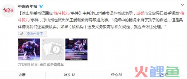 7月25日,凉山州委书记林书成在接受中新网记者采访时表示,目前凉山正在调查“格斗孤儿”一事,如果违反《义务教育法》会依法处理。@人民日报 表示关注,孩子们将重返学院,但舆论对孩子们未来生活表示担忧,“走出搏击的铁笼,还会跌入困顿的深渊吗?”
