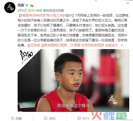 8月17日,“王志安”推文《格斗孤儿:终于被“逼回凉山”》(点击可跳转阅读),引发热议,文章已突破10万+。