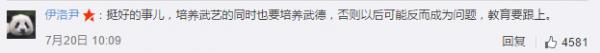 也有人提出武艺和武德要齐头并进,文化教育对未成年人人文感悟、人格培养、性格塑造等内在素质具有不可或缺的作用,同时也能避免他们成为“暴力机器”之类的社会隐患。