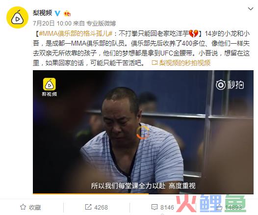 7月20日,@梨视频 上传了一则两名小男孩进行搏击比赛的视频,首次曝光了成都恩波格斗俱乐部里的 “格斗孤儿”,引发了网民们的热议。