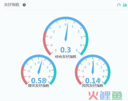 此数据来源微舆情,如图显示,媒体友好指数0.58,相对较为友好,网民指数没有媒体友好指数那么好,但是也是友好,综合友好注数为0.3。
