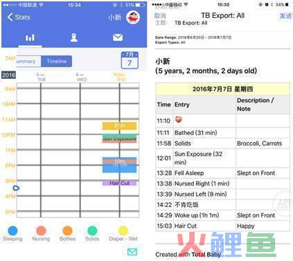 单纯的记录不足以追踪宝宝的成长过程,它提供了图表统计功能,支持将选定的活动以表格的形式分享。