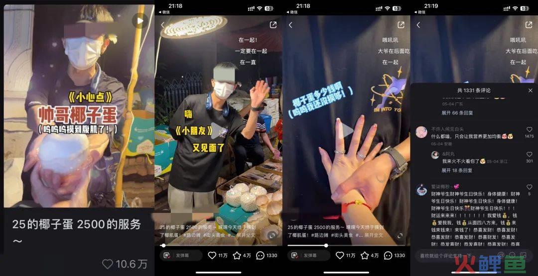 小红书爆文内容:内容分享博主到摊位买椰子蛋之后被摊主一而再再而三的温柔糖衣炮弹所攻陷的场景,直呼真的好会啊 ,隔着屏幕都感受到了帅哥的甜和博主的开心。