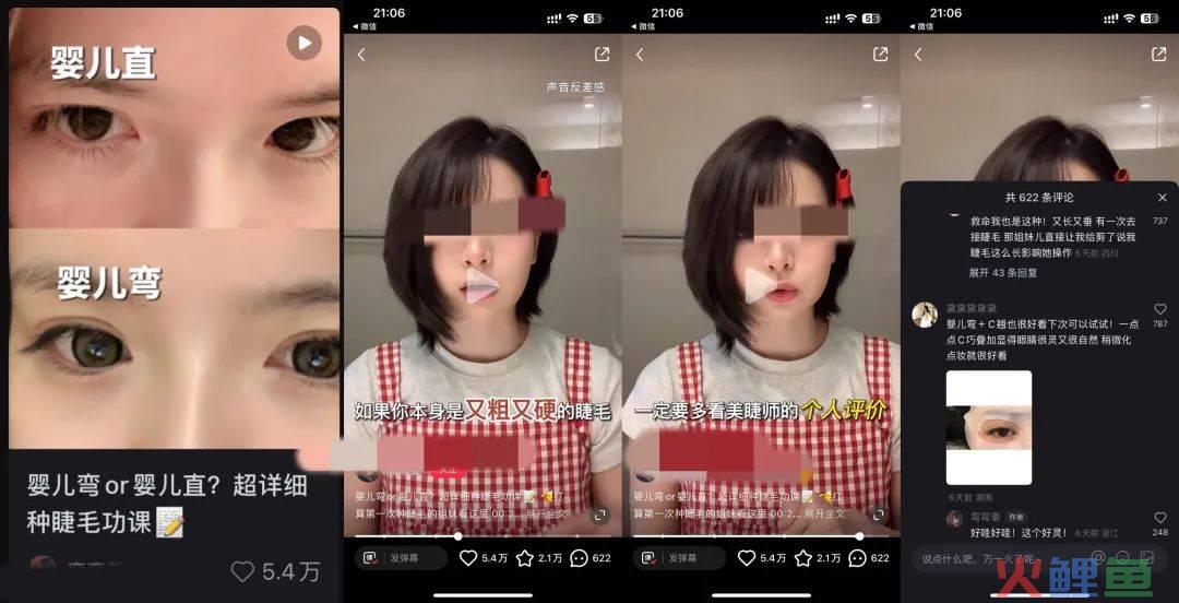 小红爆文封面:封面是2种睫毛的展示和对比,用户可以通过2种睫毛的不同来做带入,看自己属于哪一种,很容易产生一种对比和带入心理。