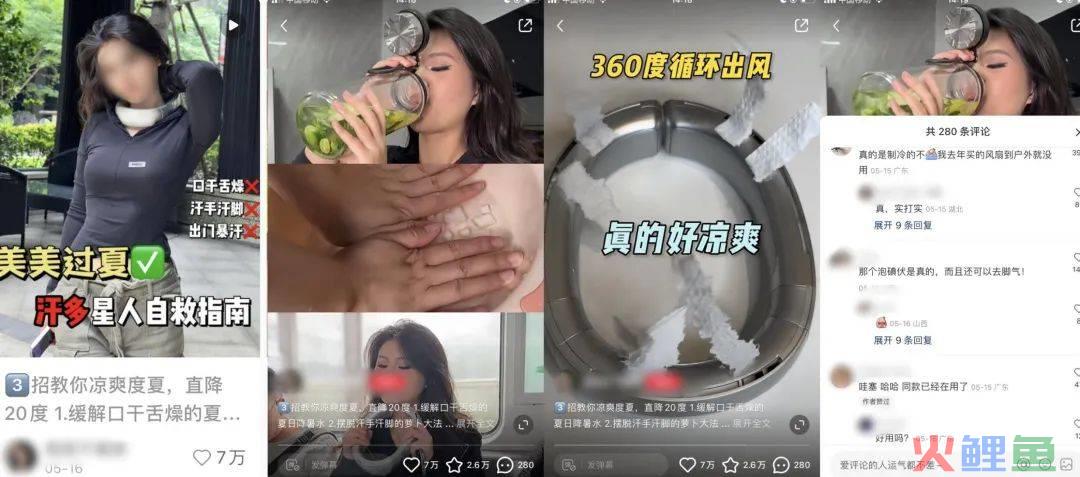小红书爆文内容:博主围绕着大家的”口干舌燥、汗手汗脚、出门暴汗“的夏日”通病“的问题一一给出了解决方案,每一招的解决方案出现的详细的步骤展示,并且巧妙地植入产品安利,种草安利性极强,让具有同样烦恼的用户不由得想跃跃欲试。
