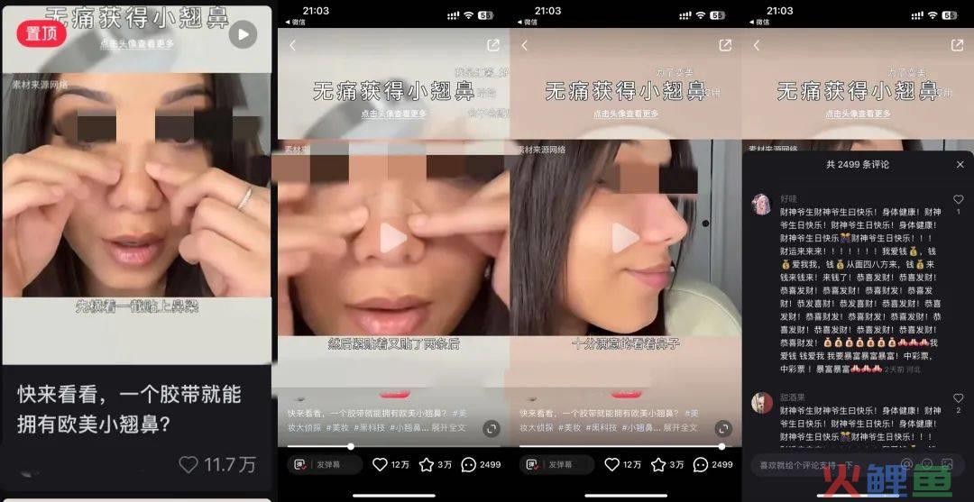 抄作业:博主用标题就吸引了大家的注意,用日常生活中常见的小东西就能打造完美鼻形,是很多鼻型不是很完美的小伙伴所需求的,博主抓住了这类目标人群的痛点,做针对性解决问题,并且不花一分钱,更加吸引用户了。