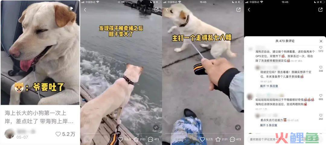 小红书爆文内容:博主来接海狗尝试带它上岸带回北方的家,海狗在船上表现很开心躁动,上陆地不听指挥和到后面坐上车的水土不服形成鲜明的对比,这种反差的效果让人不禁一笑并用比较诙谐搞笑的配音来描述海狗居然晕车,画面与文本内容巧妙地提到了产品项圈和项背的植入,给人一种真实感。