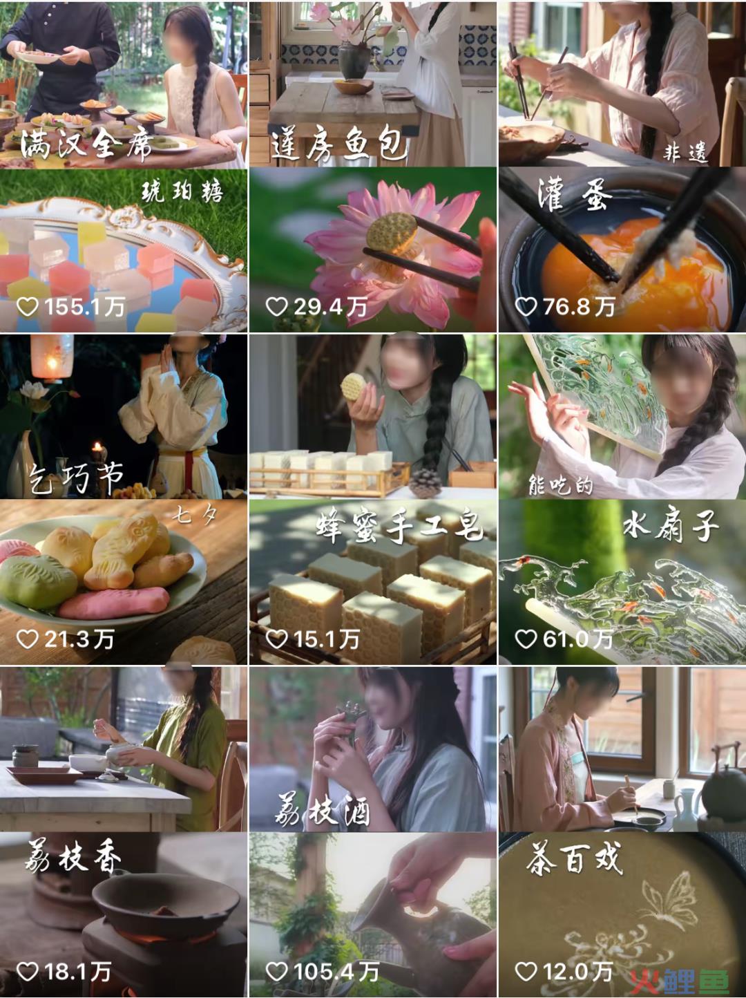 观察达人以往的作品,虽大多是以美食为主题,但其实都在传承传统文化技艺。比如1300年前的荔枝酒、宫廷美食龙须酥等美食,还有纸鸢、鱼灯、通草花等物品的还原,以及苗族银饰、何首乌洗发皂等物品的制作,都在达人视频中得以呈现。