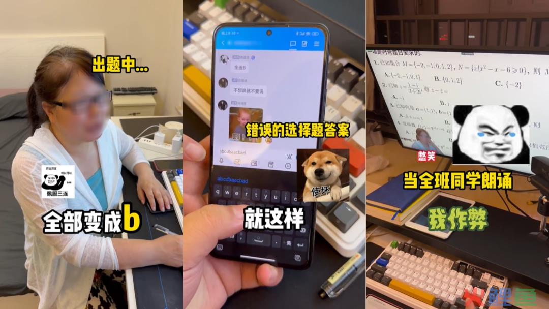 继游戏转型搞笑赛道后,@丁家乐的妈妈是老师(后文简称丁家乐)借势高考热点又出爆款。在《卧龙凤雏!》作品中,达人将高考数学试卷伪装成日常试卷,并将答案除第7题外都改成B,而丁家乐还潜入交流群发布错误答案,最后一名叫陈瑞祥的同学因作弊而在全班面前大声检讨。