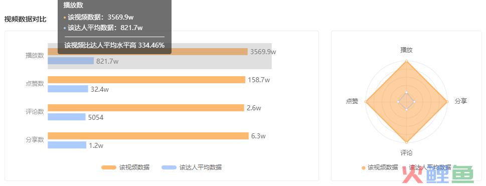 搞笑元素搭配反转剧情,许多网友为此驻足,最终该条视频赢得了3569.9w播放、158.7w点赞,且多个维度数据大幅增长。其中,播放数就高出达人平均水平334.46%。