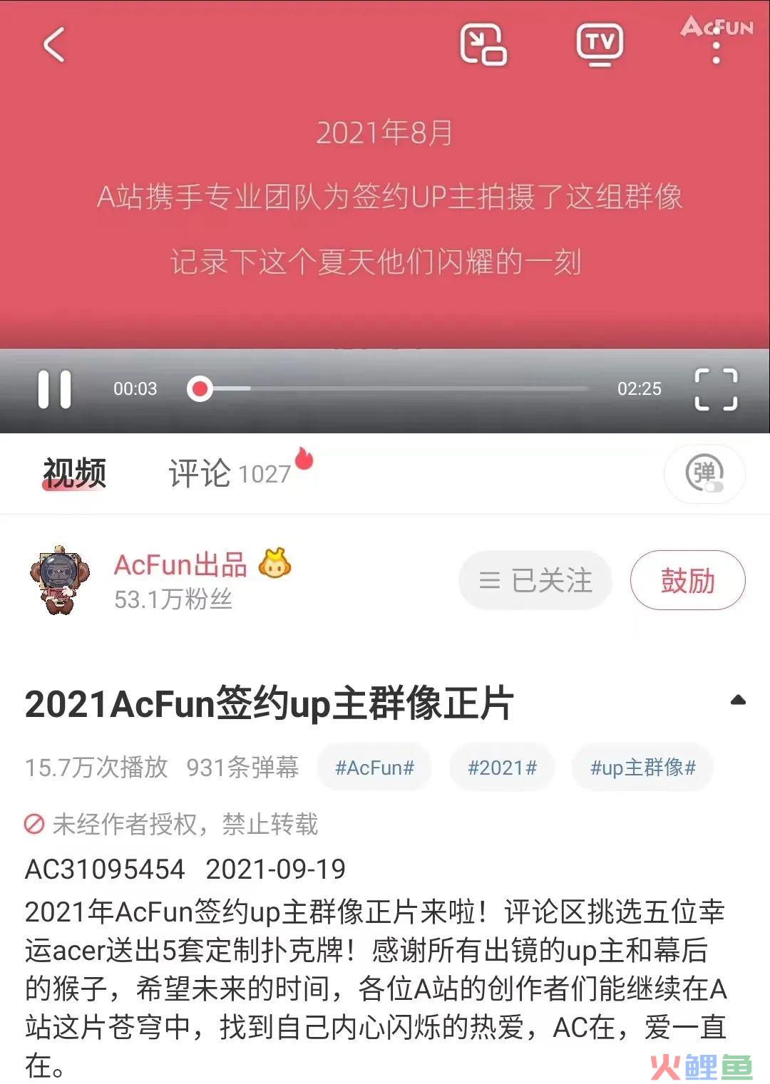 2021年9月,A站官方发布了一条标题为《2021 AcFun签约UP主群像正片》的视频,类似水浒传英雄谱一般的滚动卷轴,记录下了众多UP主的“闪耀一刻”。一位用户在视频下留言:“希望明年可以更长。”