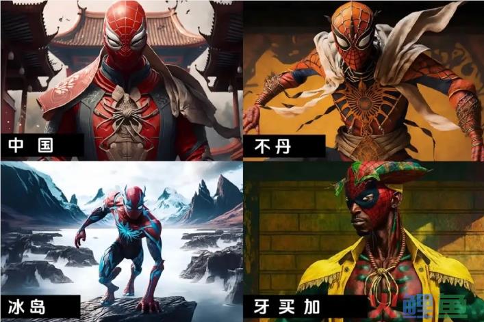 ⛹️♂️ 一位抖音网友使用AI软件生成不同国家风格的蜘蛛侠形象。
