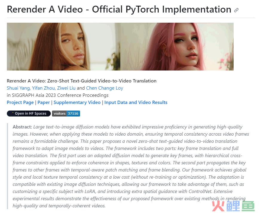 项目地址:https://github.com/williamyang1991/Rerender_A_Video