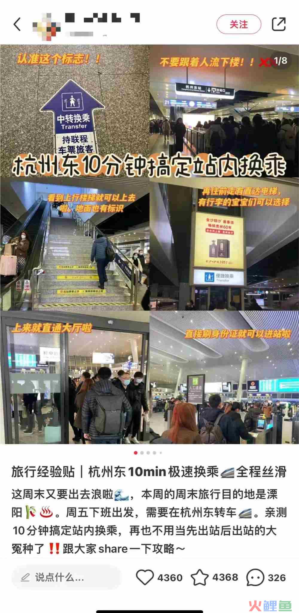 有一次我乘坐高铁,需要换乘,但我不知道在那个车站里怎么快速转乘,我在小红书上搜索的结果里,看到有人分享了一条非常详细的攻略,甚至把整个路线给标出来了。评论区里,又有其他人补充进去了更多细节,哪些细节优化,可以换乘更快。很难想象在其他地方,怎么去获得这样的信息。