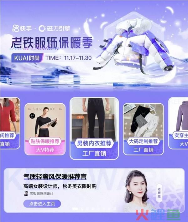 这个冬天,不少地方经历“断崖式降温”,保暖御寒的服饰需求也进入了爆发期。与此同时,快手的“KUAI时尚·老铁服饰保暖季”活动更是火爆,羽绒服、保暖内衣、保暖套装、秋冬鞋靴、保暖大衣……保暖的方方面面都为网友们准备好了,陪网友们温暖度过这个寒冬。
