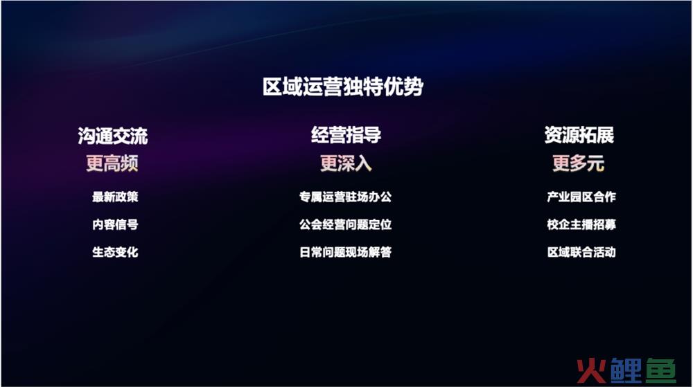 在直播公会运营侧,快手在今年上线了区域运营,开启了“直播+区域运营”的发展模式。区域运营的相关负责人在对话新播场时,就提到了会在区域以快手品牌为背书,促成平台公会与当地政府、企业,以及高校的合作。