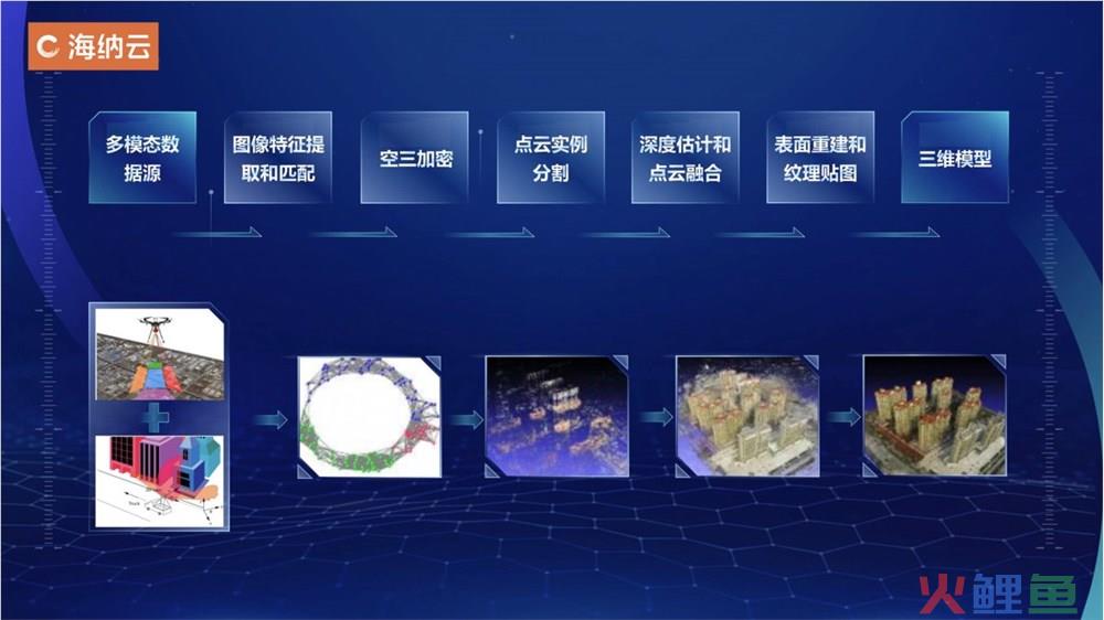 以其获奖项目“基于AI 技术的城市三维实景智能建模平台”为例,海纳云聚焦多传感器融合、关联耦合分析、三维重建等关键人工智能技术,研发了一种基于多源信息融合的城市级三维建模系统,将航拍影像、地面拍摄影像与地面激光点云进行融合互补建模,形成直观的三维模型,实现“零代码”拖拽式自定义重建流程编辑,从而快速、集约地对城市场景进行三维可视化重建,对数字孪生发展和数字城市建设具有重要意义。