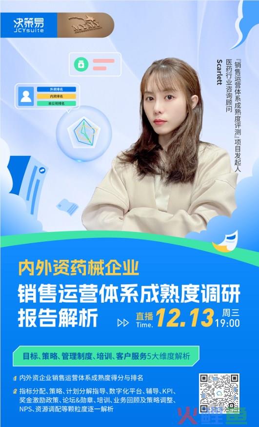 通过此问卷揭晓了业内企业关于销售运营成熟度的普遍问题,为了更好解决这些问题,特邀请销售运营体系成熟度评测项目发起人、生命科学行业顾问Scarlett于 12 月 13 号晚上 7 点,给大家带来该项目报告解析。通过对内外资近 300 家企业SFE、市场、战略、医学事务等部门的调查,从终端管理到区域架构、指标费用、CRM管理、流向数据、报告和业绩分析、奖金激励为主的闭环体系作全面梳理,以期帮助企业挖掘到自己的短板,从缘由到结果改变。