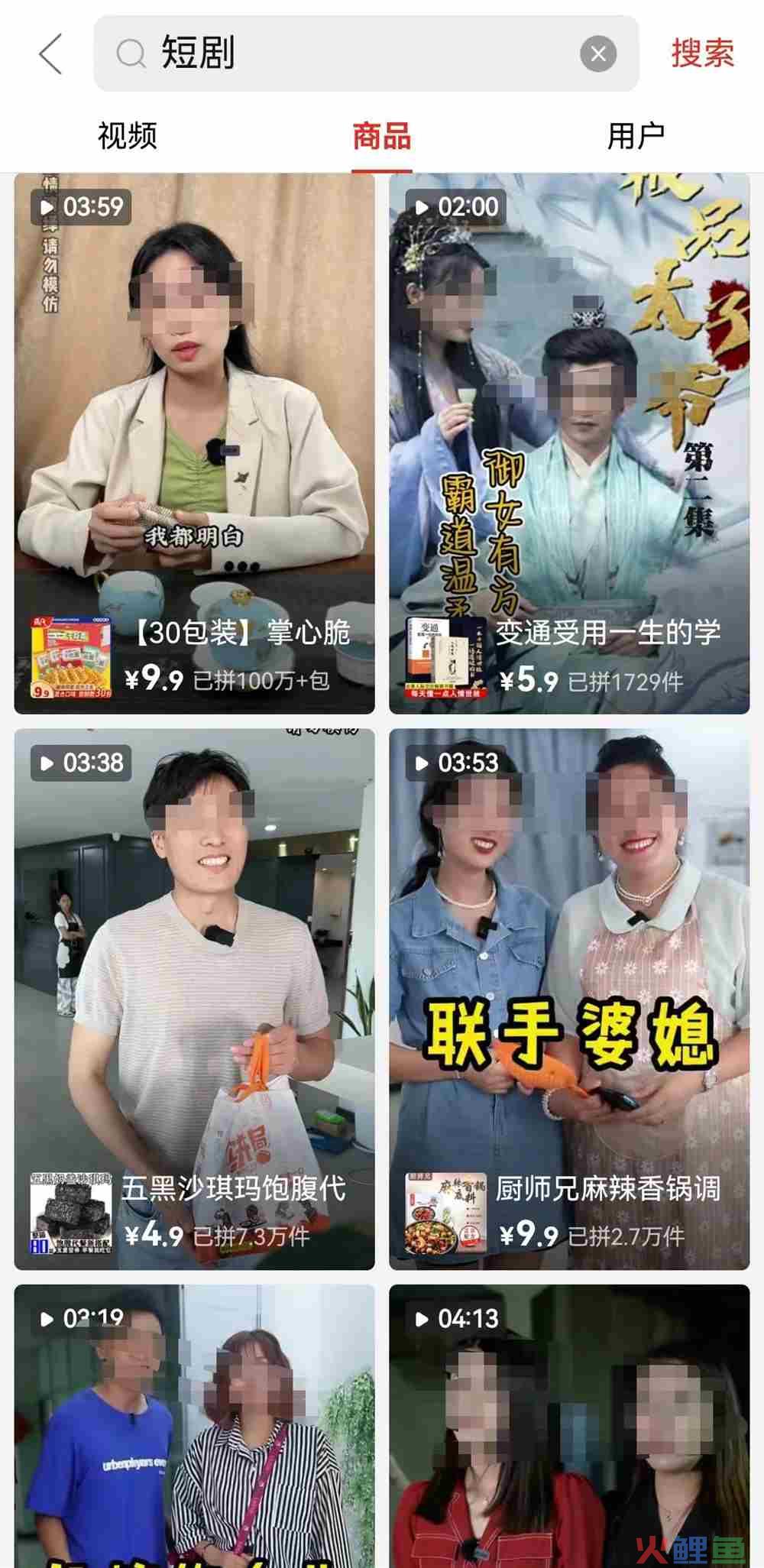 与淘宝不同的是,拼多多和京东的短剧还没有单独的页面板块,混合在短视频的信息流中,通过大数据推荐给用户。