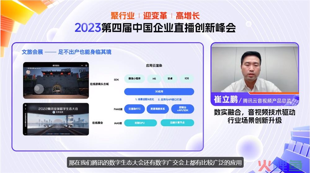 腾讯云音视频产品总监崔立鹏提到,数实融合时代,越来越多传统行业转型将实体服务与线上虚拟服务融合,以音视频技术来改善行业场景中的业务流程和用户体验。