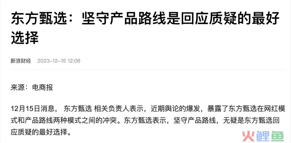 东方甄选态度强硬,回应外界质疑时一句“坚守产品路线,无疑是东方甄选回应质疑的最好选择”。无疑向外界昭示:董宇辉没有那么重要。