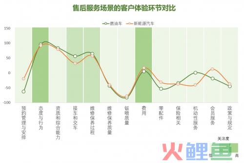 在预约管理与安排、费用、零配件、会员服务等环节,新能源汽车的客户体验均优于燃油车,而燃油车在接车交车、机动性服务方面表现更好。