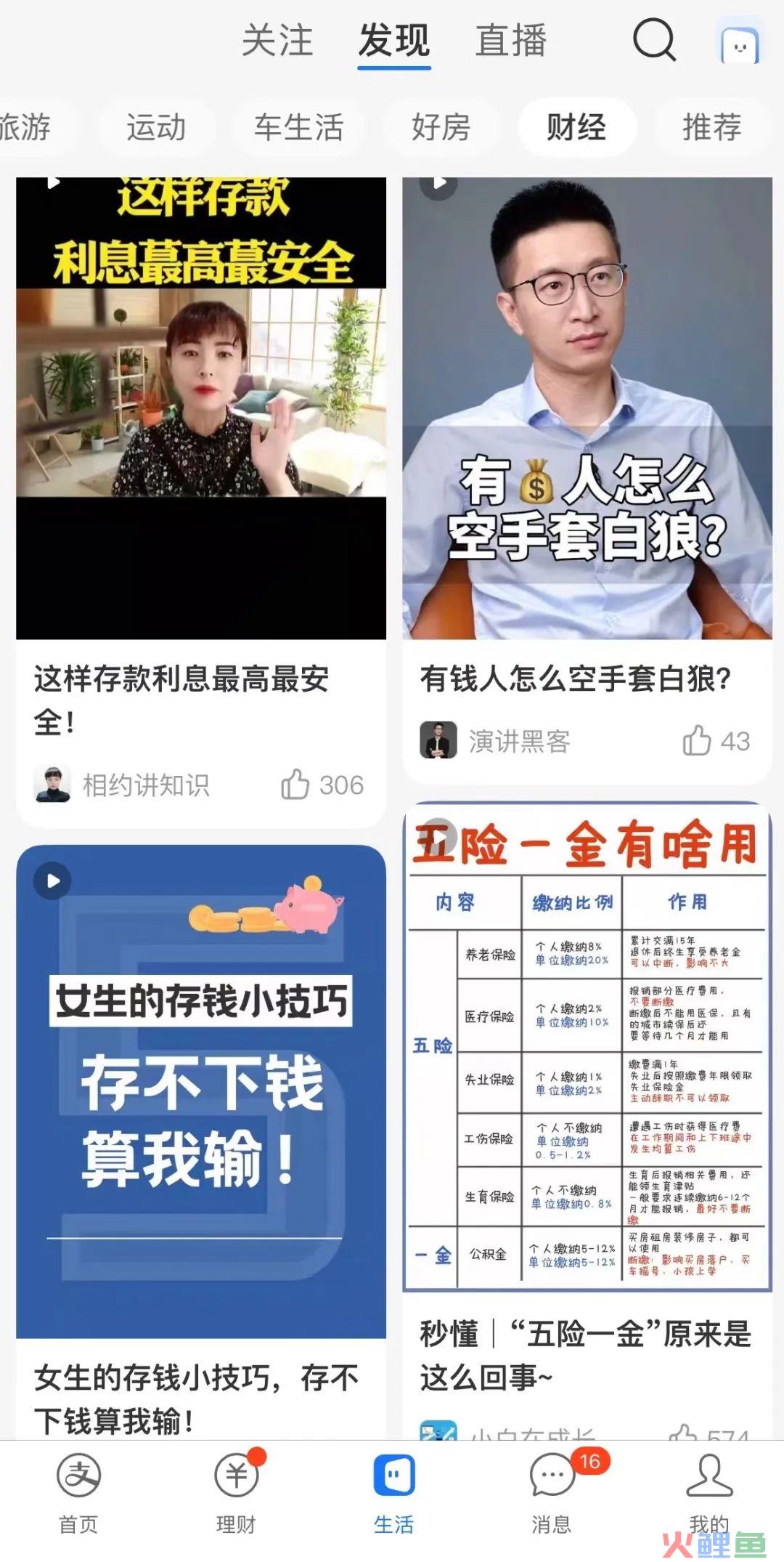 虽然支付宝布局内容赛道时间短,但已显露潜力。数据显示,半年来生活号上泛财商内容单月播放量增长18倍,00后最爱看“致富经”小视频。