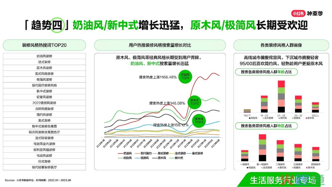 可以挑选小红书热门装修风格呈现你的设计作品和设计理念,例如可主打原木风/极简风,这类风格长期受到小红书用户欢迎,也可分享奶油风/新中式,目前增长迅猛。搞定了小红书用户关注的装修风格,再结合实用的家居搭配、空间利用等技巧或晒客户装修案例(推荐),加深用户对你的专业印象。