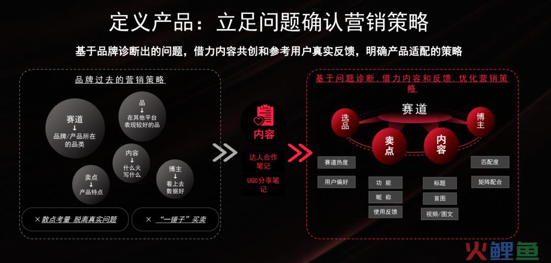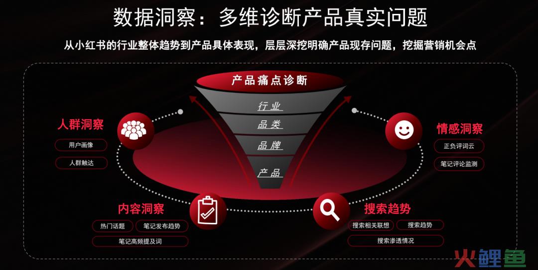 多维度洞察产品先机,基于品牌/产品赛道,分析目标用户画像、分析用户痛点需求;同时,纵向观察行业赛道,分析竞品信息,对比自身产品优势,从而提炼自身卖点,结合用户痛点产出营销内容,借助节点或者KOL能量,进行种草。