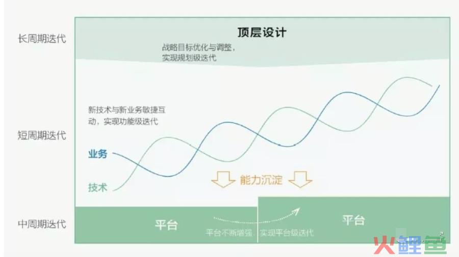 并且要将短周期迭代中的成功经验,不断沉淀到平台中,往往在失败的短周期迭代中,也会有闪光点,不能错失每一个有价值的积累,平台级的中周期迭代,有利于将转型的能力持续做厚。