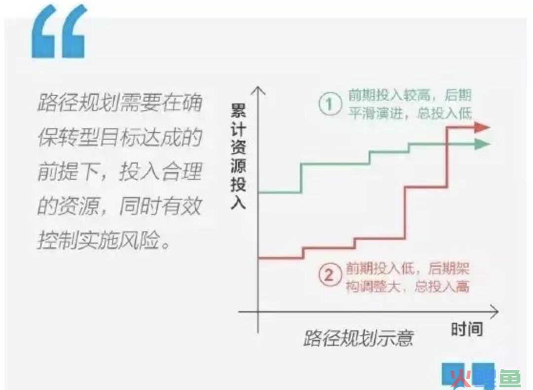 一方面要保证转型目标有效落地,具备可实施性,另一方面,还要同时保障转型未来可演进,可持续发展,因此良好的企业架构设计是其中的关键点。