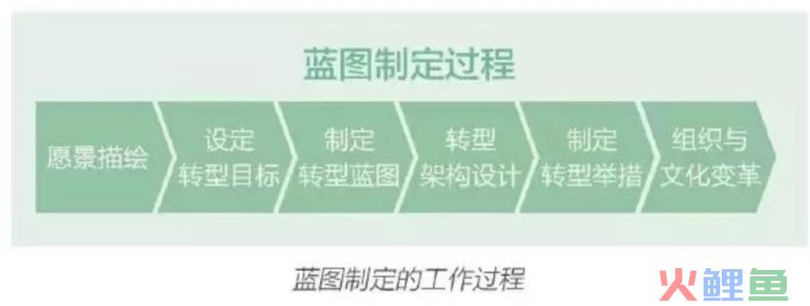 蓝图制定为数字化转型制定总目标,指引转型的总方向,使转型成为全局性共识,其主要工作包括描愿景描绘,转型目标设定,转型蓝图制定,架构设计,技术路线选择,制定转型举措和组织文化变革等。