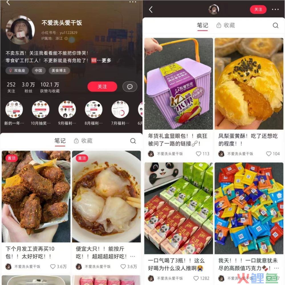 无独有偶,据克劳锐观察,小红书平台腰部达人往往能接到更多商单。作为美食领域的腰部达人,@不爱洗头爱干饭 粉丝量刚刚超过3万,商单数就已超过60,合作产品主要为零食速食等。