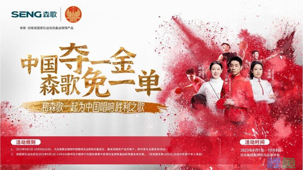 2023 年开年以来,森歌便牵手国家体育总局,以一位陪伴者的身份,在运动健儿的日常生活中发光发热。 2 月,森歌成功入选国家体育总局训练局集成灶品牌,成为行业首家入选体育总局训练局的集成灶品牌; 3 月,森歌与国家体育总局训练局合作签约,森歌集成灶及集成洗碗机为“体育·训练局国家队运动员备战保障产品”; 10 月,完成训练局运动员之家厨电定制,并在第 一时间欢迎冠军回家。