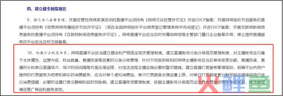 2021年2月发布的《关于加强网络直播规范管理工作的指导意见》明确提出要建立直播账号分类分级规范管理制度;2022年6月发布的《网络主播行为规范》也提出建立健全网络主播信用评价体系,根据主播信用分值等级划分管理,建立平台与主播约束关系机制。