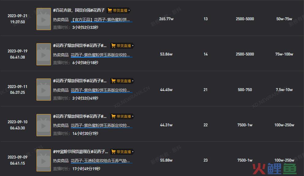 据新榜旗下抖音数据工具新抖统计,舆论高峰时,花西子抖音官方直播间“花西子官方旗舰店”的单日GMV跌幅明显:9月10日预估带货100万-250万,9月11日预估带货7.5万-10万元。