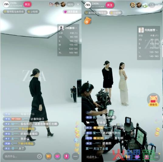 据了解,Zara的这场直播一改传统直播间的紧凑,而是将整个秀场搬到了直播间,用户不仅可以看到Zara以T台走秀的形式演绎讲解多款Zara秋冬新品,还可以看到模特更换妆造、摄影师跟拍这些镜头外的场景,沉浸感拉满。