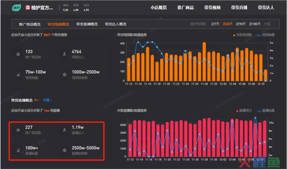 在抖音,KOC分销已经成为日护品牌植护的GMV贡献大头。据新抖数据统计,近30天植护合作1.19万个直播达人,关联14万场直播,最终累计带货2500万-5000万元。