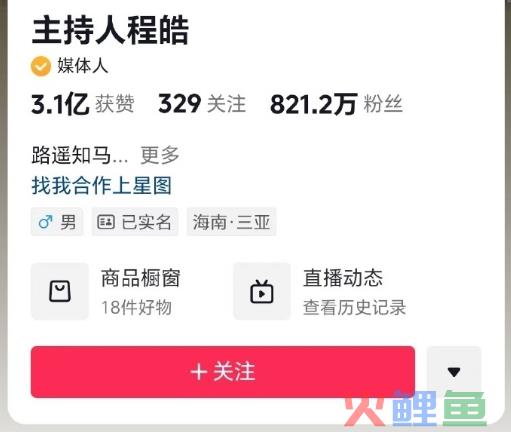 然而,停职风波并未影响“主持人程皓”的抖音账号粉丝数飙升。短短数日内,其粉丝数已达到821万。