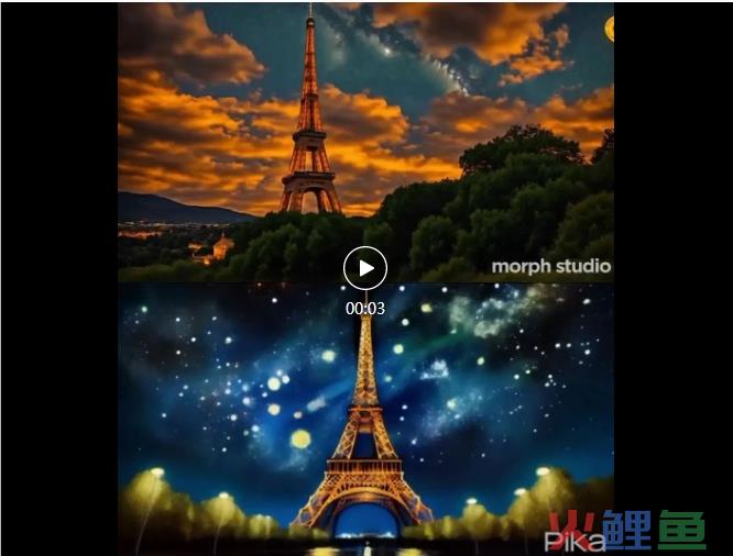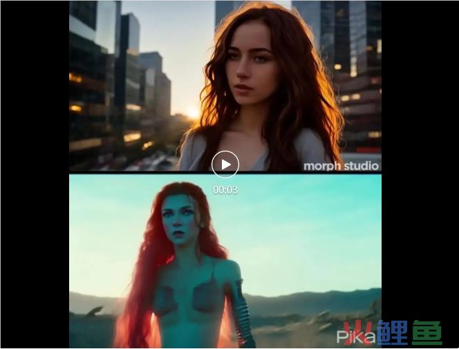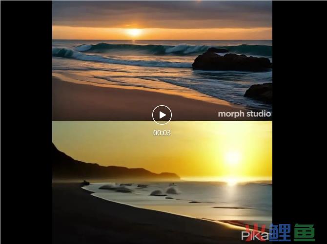 同样的 prompt ,我们将Morph Studio的作品放在了视频上部分,将用Pika生成的作品放在视频下部分。
