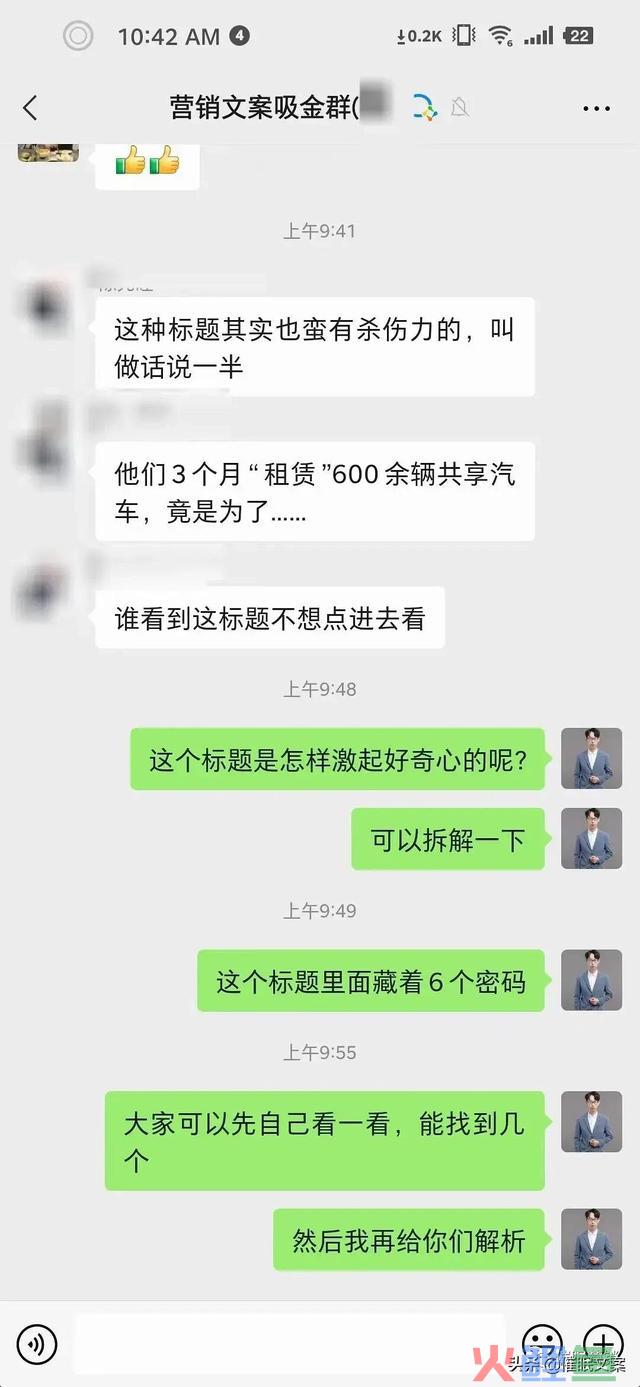 他在群里甩了一个精彩标题,“谁看到这种标题不想点进去看?”
