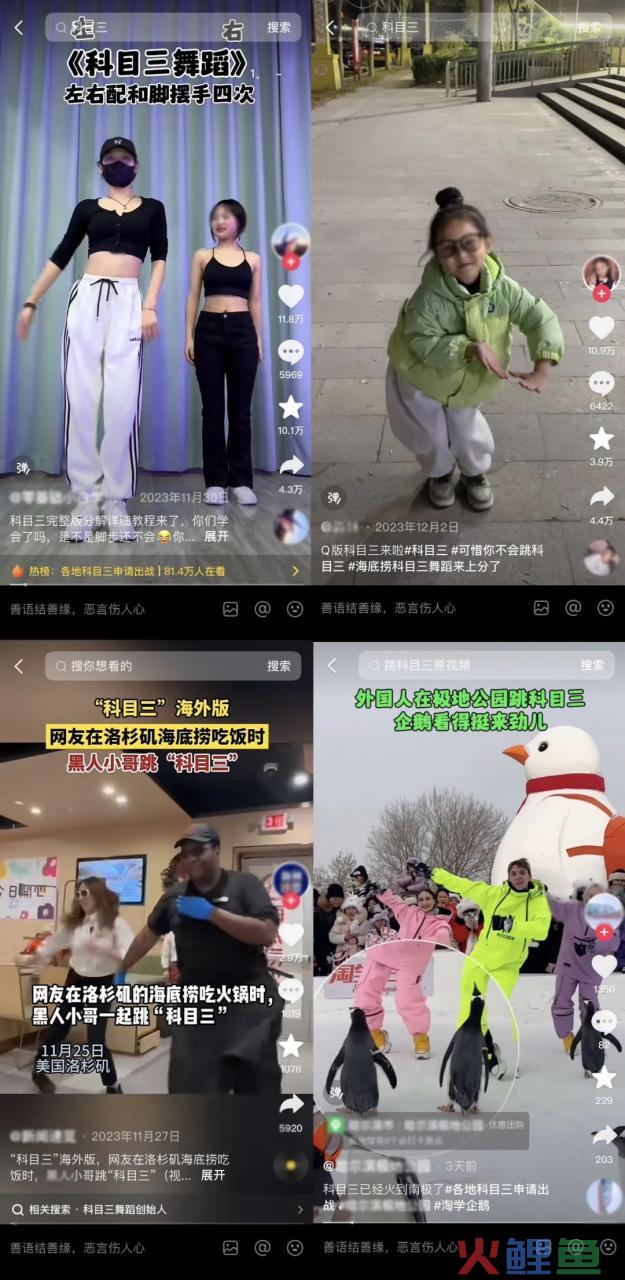 在抖音短视频平台上,与「科目三」相关的话题#科目三 、#科目三舞蹈、#广西科目三的相关视频累计播放量已经超过了663.7亿次。