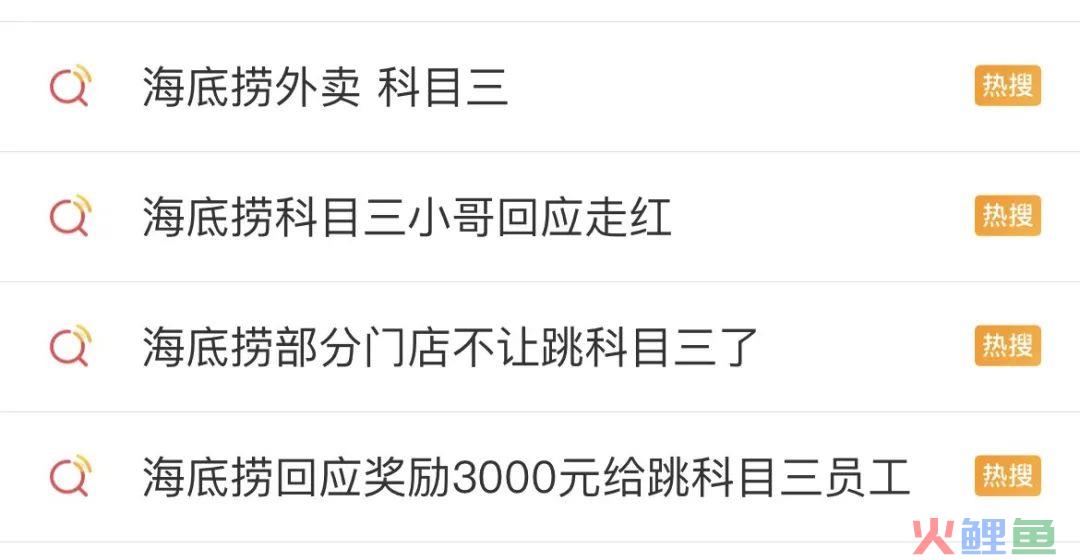 海底捞也因此多次登上了热搜榜,帮助品牌建立了#海底捞外卖 科目三#、#海底捞科目三#、#海底捞回应奖励3000元给跳科目三员工#等多个相关热搜,品牌带来了超高的话题讨论与流量。