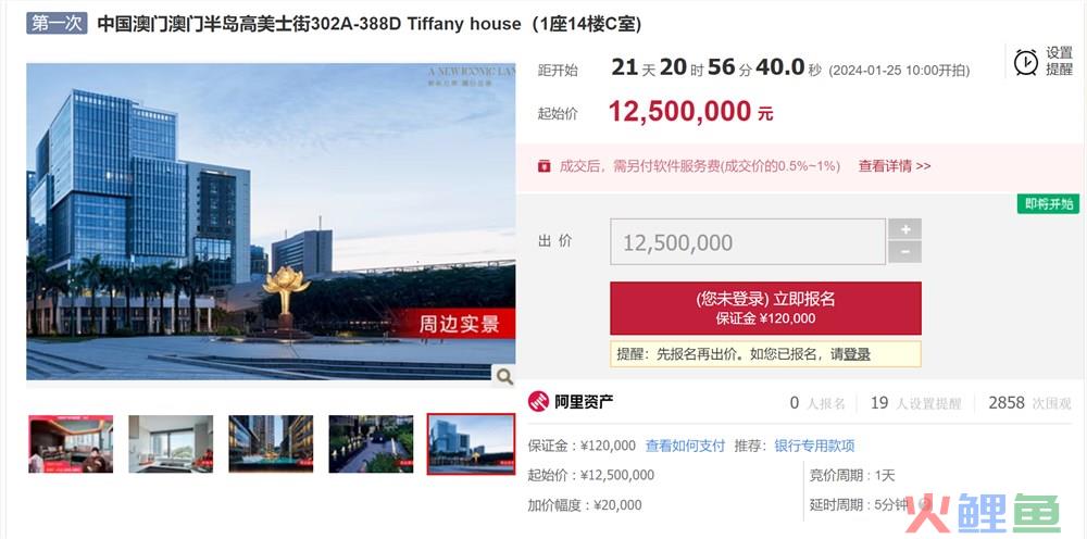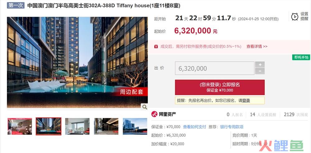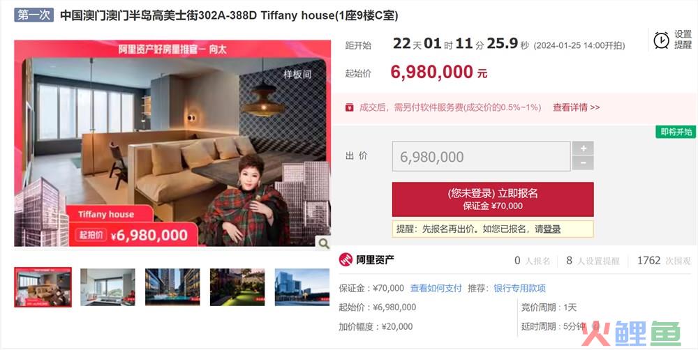 1月2日,澳门豪宅Tiffany house首发上架阿里资产,共3套全新住宅,全部8折起拍,将于1月25日1开拍,竞价24小时,1月26日结拍。