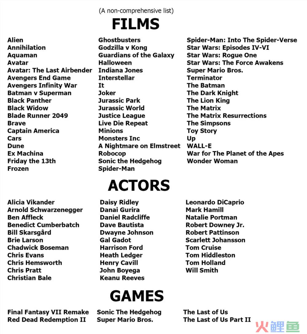 虽然 Midjourney 可能会很快修补这个特定的提示词,但 Midjourney 产生潜在侵权行为的能力是显而易见的。Marcus 和他的同伴发现了以下被「抄袭」的受害者,更多电影、演员和游戏的名单将在他们的 YouTube 频道发布。