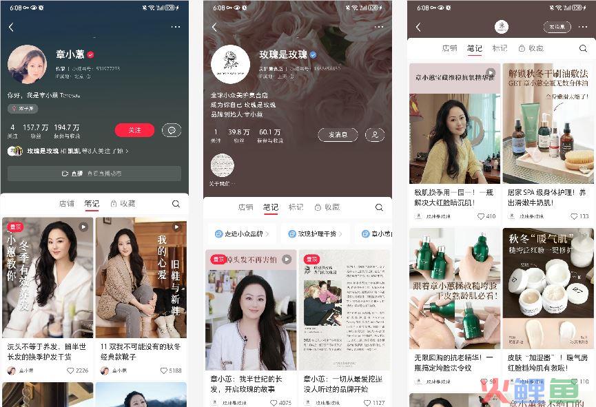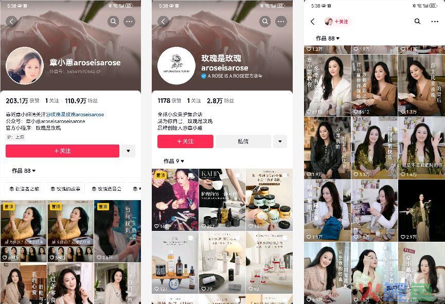 2)IP流量出众:作为明星章小蕙IP自带流量,全网粉丝数超500万。在私域的设计上,账号章小蕙主要负责流量引入和品牌故事。账号玫瑰是玫瑰,则负责卖货和复购。通过链路打通,形成了闭合。