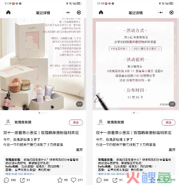玫瑰是玫瑰则选择了用简单粗暴方式——营销活动。下面以小红书、公众号两个平台分别举例。