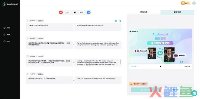 那么,这个能够解决视频翻译问题的工具是什么呢?它就是Anylang.ai,一款利用AI技术来解决视频翻译难题的工具。想象一下,不需要为每个市场重新拍摄视频,也不需要费心翻译和配音。只需上传视频,选择语言,即可轻松完成!而且还能够进行预览和下载,简直省心至极。