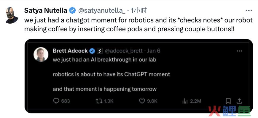 公司创始人Brettt Adcock称,这就是机器人技术的ChatGPT时刻。
