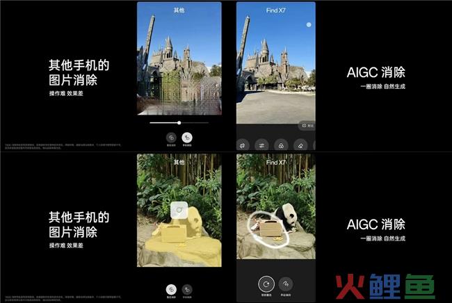 相信不少人在旅行过程中都遇到过这种情况:拍了美照但是无法分享,原因是人山人海的背景或者照片出现遮挡的物品。「AIGC消除」功能成功解决了这个烦恼。依托AndesGPT生成式视觉大模型,帮助用户能够快速地进行圈图选择,自动剔除和补全完整图片,一键无痕地消除不需要的路人或杂物。根据现场演示,OPPO Find X7 系列对比其他手机的图片消除能力,在操作性、自然度和效果上有显著优势。
